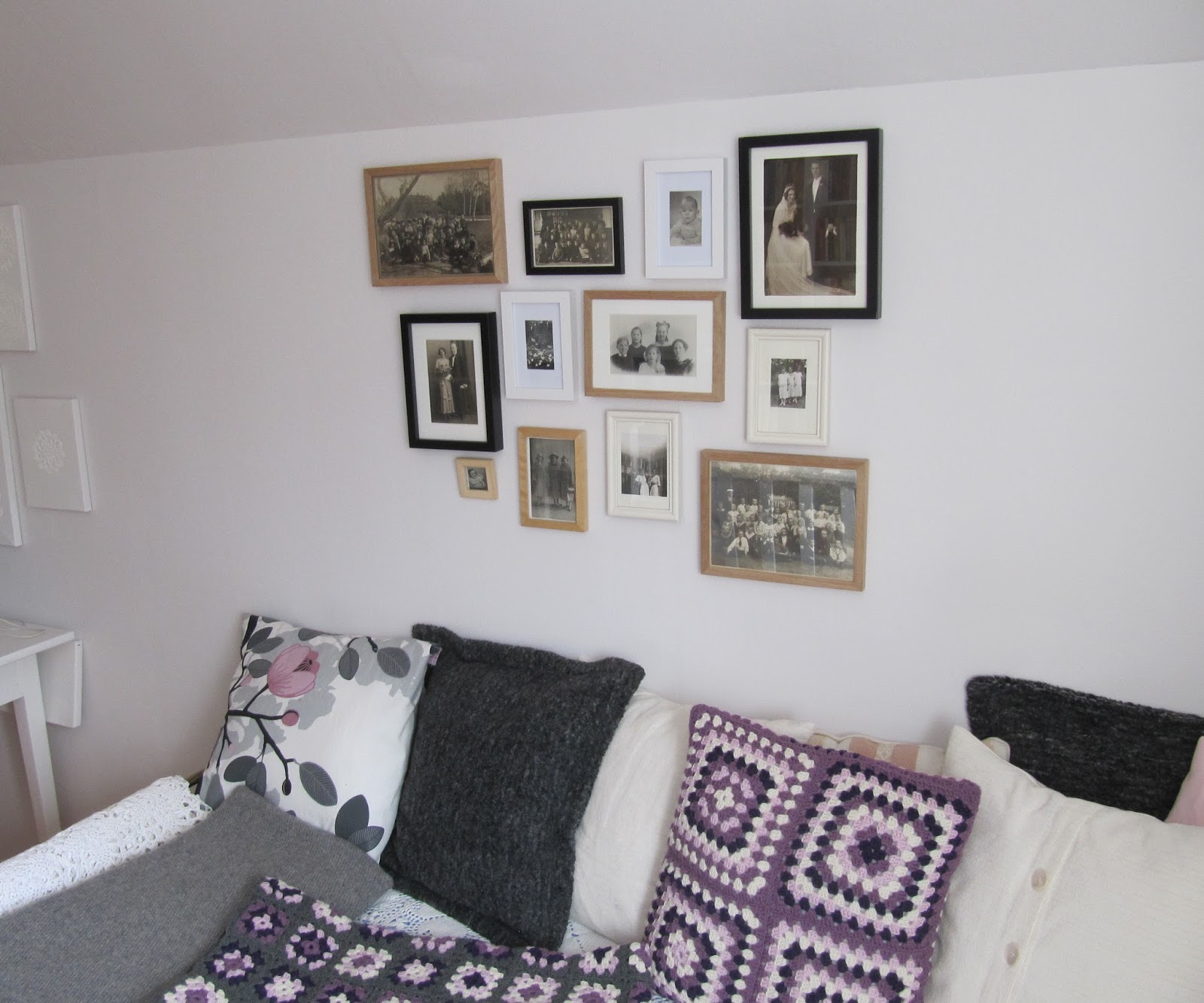 På sportlovet ägnade jag mig åt att botanisera lite i gamla svartvita foton. En liten fotovägg har det blivit ovanför dagbädden. Jag valde att ha lite olika sorter och färger på ramarna. Det blir mer levande då.